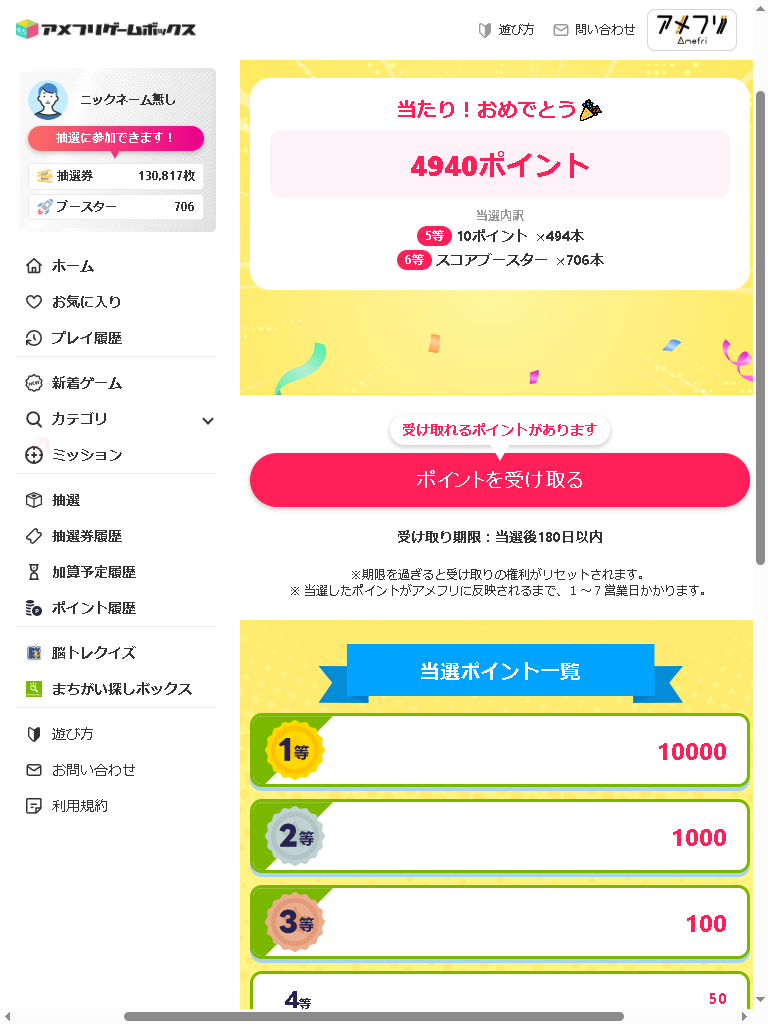 まずは簡単に説明。ポイントを手に入れるためにはくじ抽選が必要で、