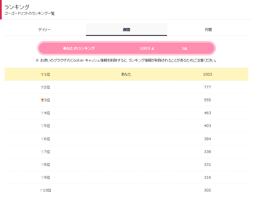 (※月間ランキングは不具合があるので公平に競うことができません)